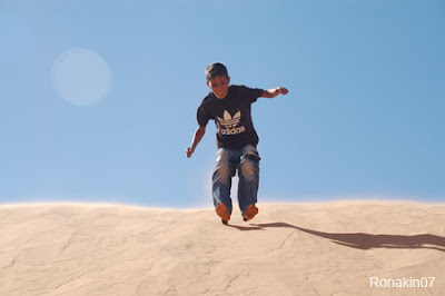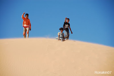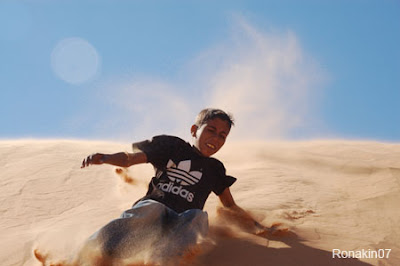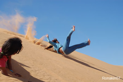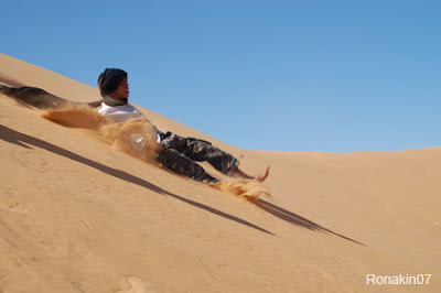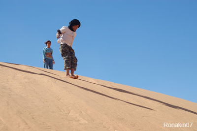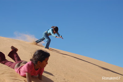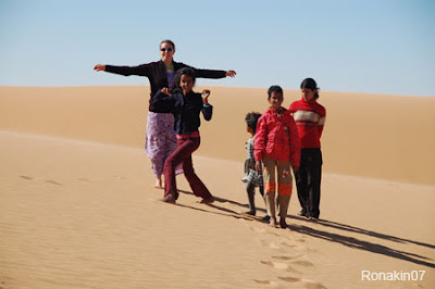 ¡Qué poco se necesita para hacer una fiesta donde poco hay! Salir de excursión a las dunas es lo más parecido que ir con toda la familia (con toda la familia y con todos los amigos) a un parque de atracciones. Una vez más pudimos comprobar que en el flamante Land de Mifhidi todo cabe, es lo más parecido que he visto al bolso de Mary Poppims. Alfombras, garrafas de agua, víveres, ollas, los artilugios para el té y 19 personas eufóricas.