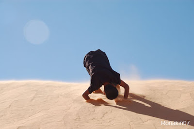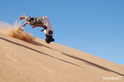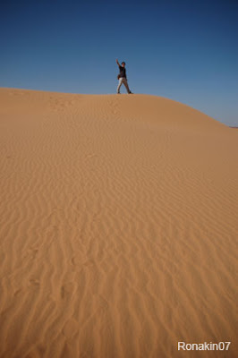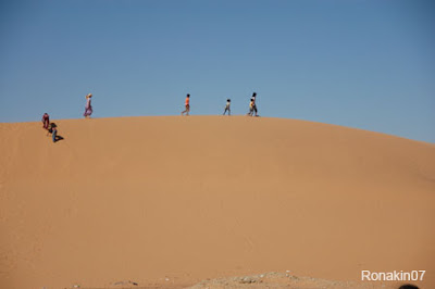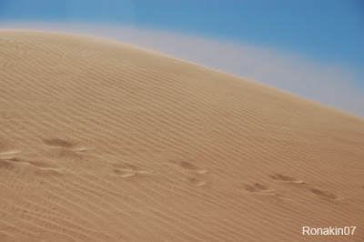 Las dunas parecen estar vivas. La vida la da el viento del desierto, que las acaricias y las lleva donde él quiere.