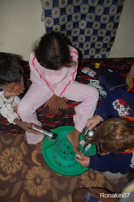 El reencuentro con nuestra niña fue accidentado. Con la emoción de vernos no vió algo que la rebanó un dedo de sus pies descalzos.